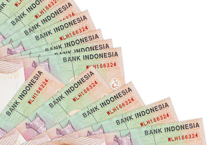 5000 Indonesian rupiah bills lies isolated on white background with copy space stacked in fan close up. Payday time concept or financial operations