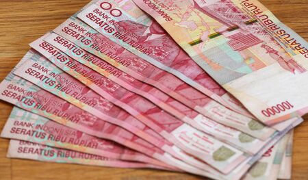indonesia rupiah banknote arranging on wooden table texture and background them