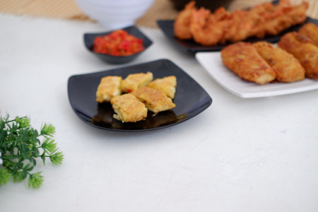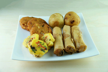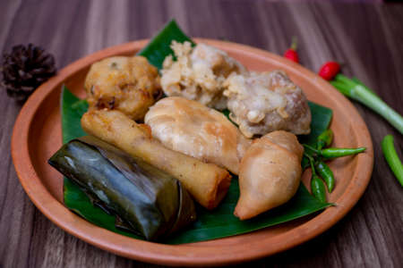 Gorengan is a typical snack from Indonesia. consisting of bakwan risol, tofu. This food is usually sold by street vendors at cheap prices.