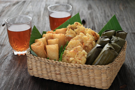 Close Up Lontong and Gorengan, Indonesia Traditional Snack for Iftar