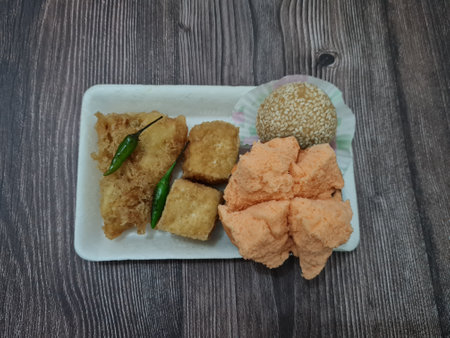 Market snacks consisting of fried tofu, fried bananas, onde-onde and bread sponge cake