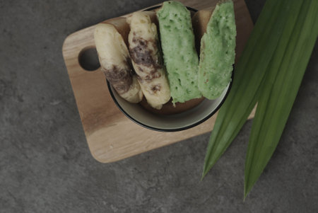 A typical Indonesian snack often called Kue Jentik Manis is a market snack that has a chewy and sweet texture. Isolated white background