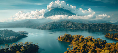 Majestic volcano awakening dramatically set against a breathtaking natural landscape backdrop