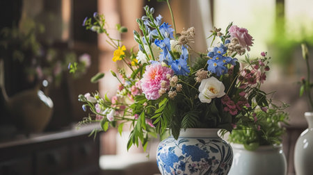 A stunning bouquet filled with vibrant flowers showcased in an artistic arrangement. This image captures the beauty and elegance of nature in soft, natural light.