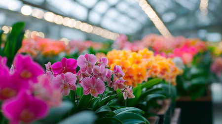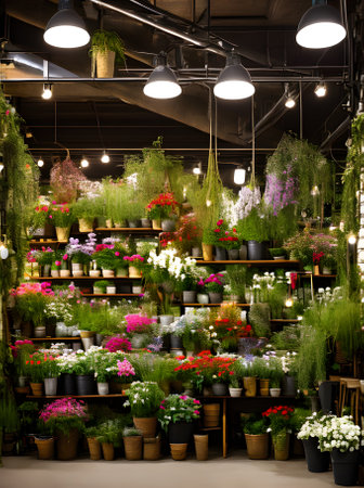 Vibrant indoor plant shop with colorful flowers and abundant greenery. That the image is generated using AI.
