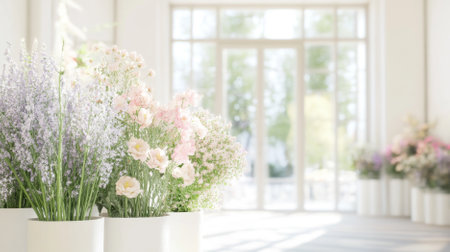 A stunning display of different types of fresh cut flowers arranged in vases, adding color and beauty to the room.