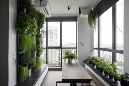 modern apartment with minimalist interior and stunning window garden on balcony, created with generative ai