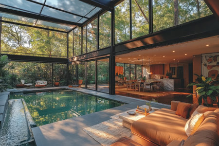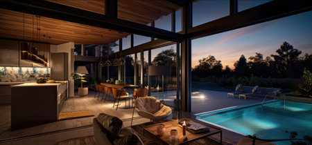 Generative ai illustration of an internal view on a contemporary house with swimming pool