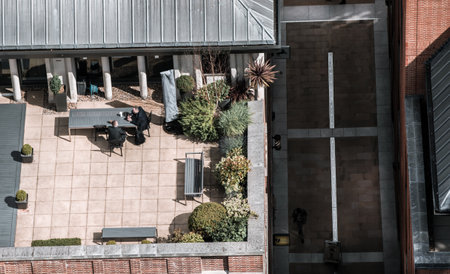 London, UK - June 20, 2019: Business people relaxing on the roof top in the City of London.