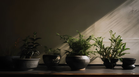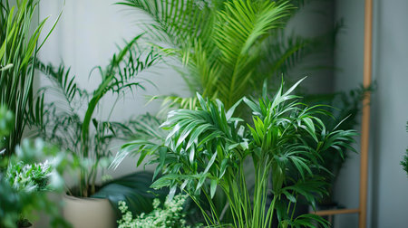 a selection of indoor plants and greenery in a modern, minimalist setting, created with generative ai