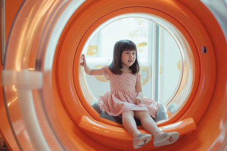 Asian little child girl accident falling off the couch after playing in an astronaut costume
