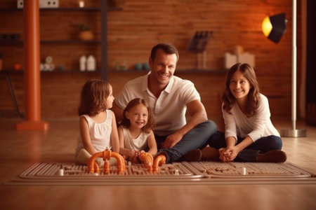 Generative AI : happy family mother father and two children playing and cuddling at home on floor