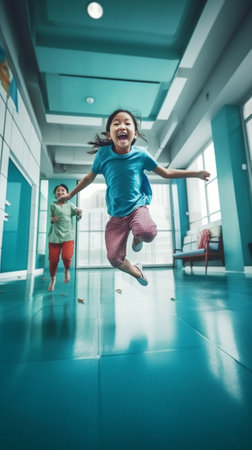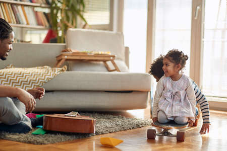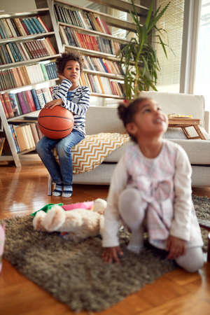 Kids are playing in a cheerful atmosphere at home. Family, together, love, playtime