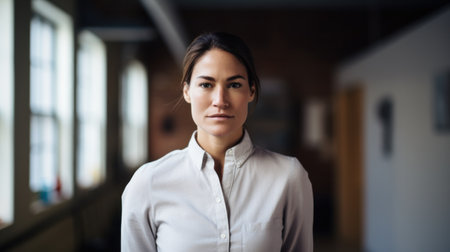 Female CEO of a company posing for the camera isolated from the background. Diverse women in corporate leading position concept image.