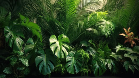 AI Generated. Lush Green Tropical Foliage Wall Texture