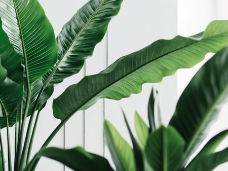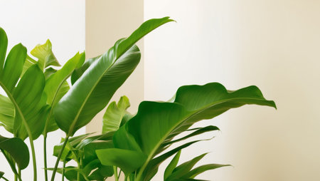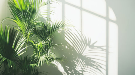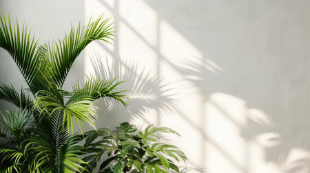 Tropical plants by a white wall with window shadow --ar 16:9 --v 6 Job ID: ee4cd5c1-2166-4408-9af6-8ac2e4c4f297