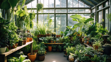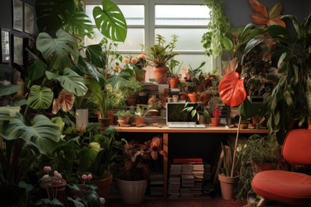 This photo captures the multitude of different plant species thriving in a vibrant and verdant room, Working at home houseplant, AI Generated
