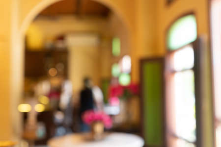 Abstract Blurry background window of coffee shop or cafe with white space for advertising and business presentation