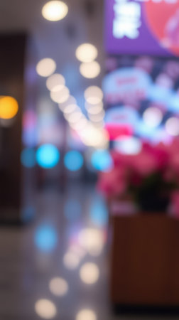 Abstract blurred background of shopping mall interior, shallow depth of field.