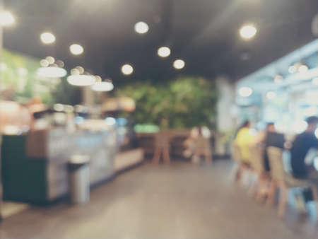 Blur coffee and restutant cafe with customers background vintage tone color style.