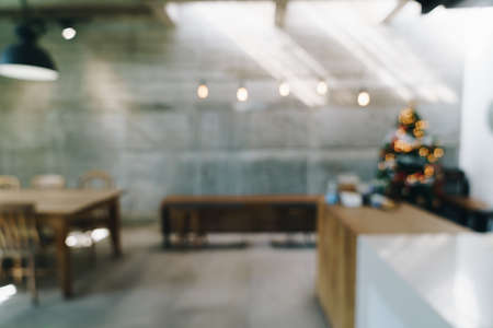 Blurred images of the coffee shop cafe interior background and lighting bokeh