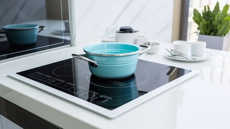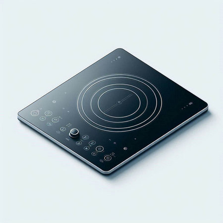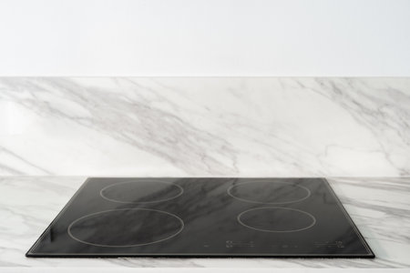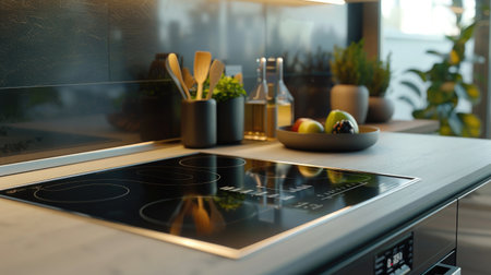 Close up of modern induction cooktop with sleek touch panel controls for precise cooking