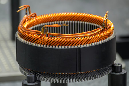 Stator of an electric motor. Close up of a winding of an electric motor.