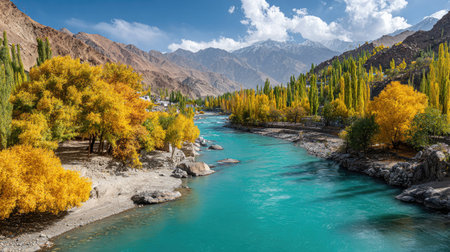 Panoramic view of turquoise river in Himalayas