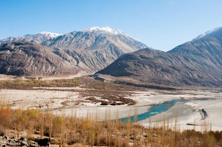 Shyok river in Nubra valley Ladakh ,Jammu Kashmir, India - September 2014