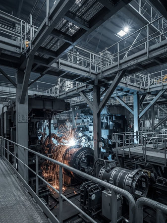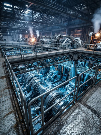Discover the intricate details of industrial machinery with this close-up image, highlighting mechanical components in an energy-rich manufacturing setting.