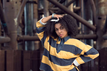 Portrait of young tired african american workman in cable production plant