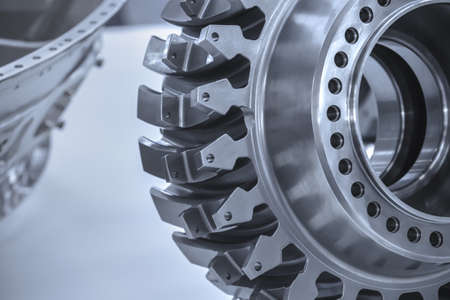 Jet engine gear wheels, industrial background.