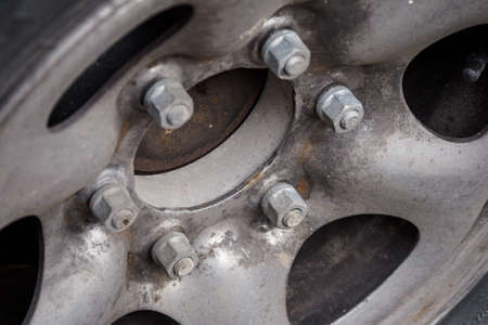 Close up car's wheel, gray color.
