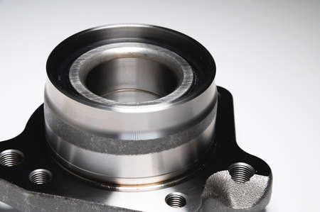 auto hub bearing new on gray background. metal spare part for front suspension