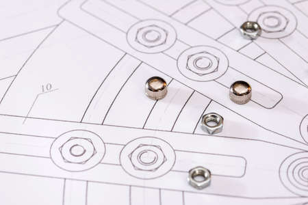 detailed drawing of parts, nuts on paper