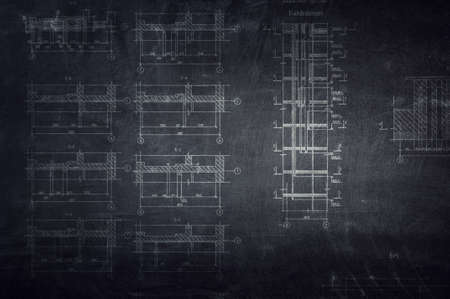 Detailed architectural blueprints and technical drawings on a dark surface for design projects
