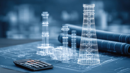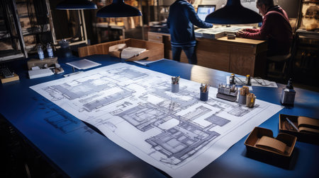 Intricate blueprints showcasing precise measurements and detailed layouts, spread out on a sleek surface, essential for meticulous construction and design development.