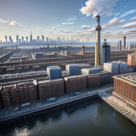 city, with view of smoggy skyline and billowing smoke stacks, created with generative ai