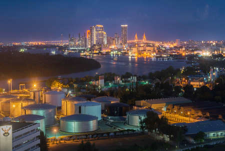 Glow light of petrochemical industry on sunset and Twilight sky ,Power plant,Energy power station area
