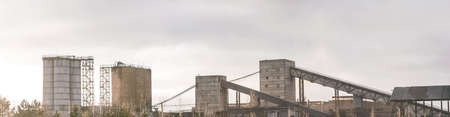 Industrial facilities of a cement plant on a sunny day. Pipes, tanks, stairs and rooms in an industrial complex in Valencia, Spain.