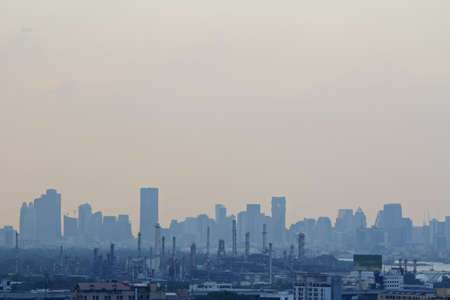 Industrial landscape with smog in the city. Filtered image processed vintage effect.