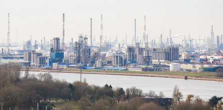View on an oil refinery in the port of Antwerp, Belgium. Antwerp is the second largest port of Europe and a major petrochemical center.