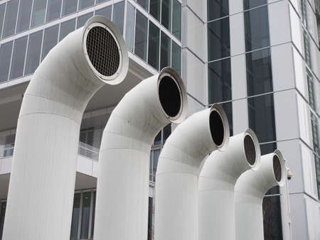 Air conditioning of buildings. Background of ventilation pipes. Laying of engineering networks. Industrial background