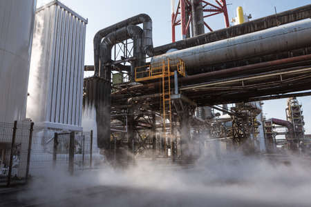 Fuel production. Gas pipeline with valves. Gas distribution system. Liquefied natural gas. Fuel industry. Processing of natural resources.