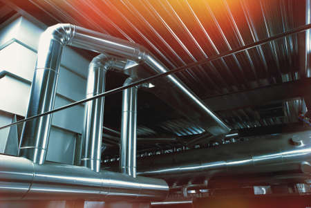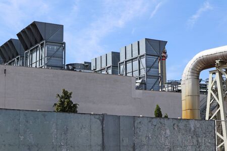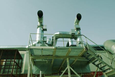 Lots of ventilation pipes. Air purification system in a chemical plant