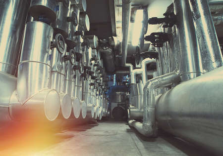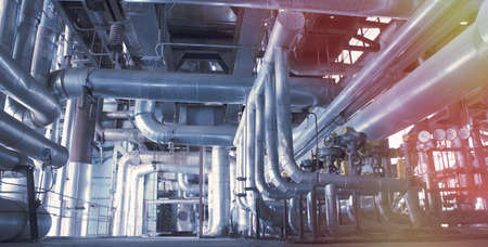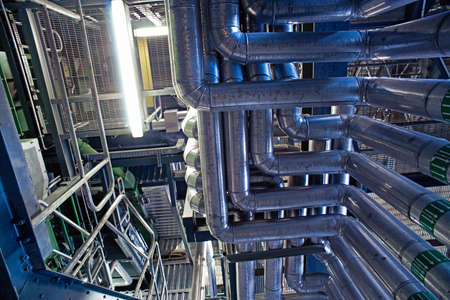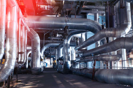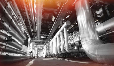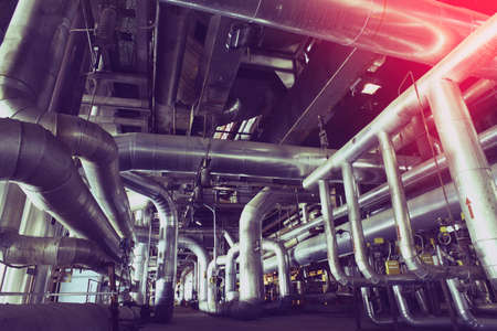Equipment, cables and piping as found inside of a modern industrial power plant