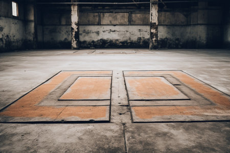 Empty industrial warehouse with concrete walls and a spacious asphalt floor