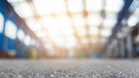 Blurred Industrial Warehouse with Focus on Concrete Floor