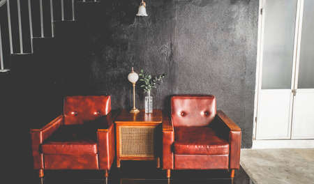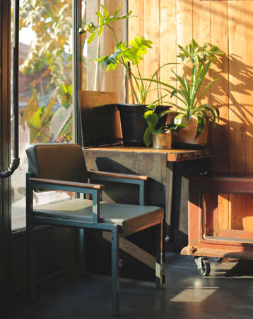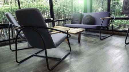 Modern interior chair and table in cafe restaurent, Quiet and chill cafe shop in vintage tone