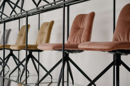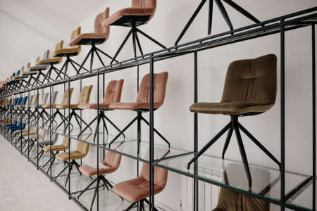 Chairs in the furniture salon. Showroom, showroom of modern upholstered furniture and chairs.Furniture store, selection of chairs